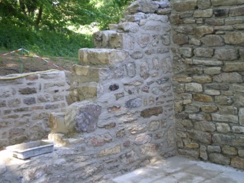 Cette partie est enfin brossée. Avec les conditions climatiques dans cette vallée boisée, on pouvait encore brosser les joints trente-six heures après la pose.