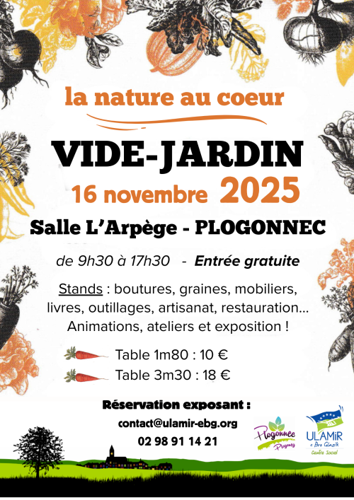 La commune de Plogonnec confie l’organisation de la deuxième édition du vide-jardin à l’Ulamir. La manifestation se déroulera le dimanche 16 novembre à L’Arpège avec pour ambition de « créer du lien entre les habitants ».